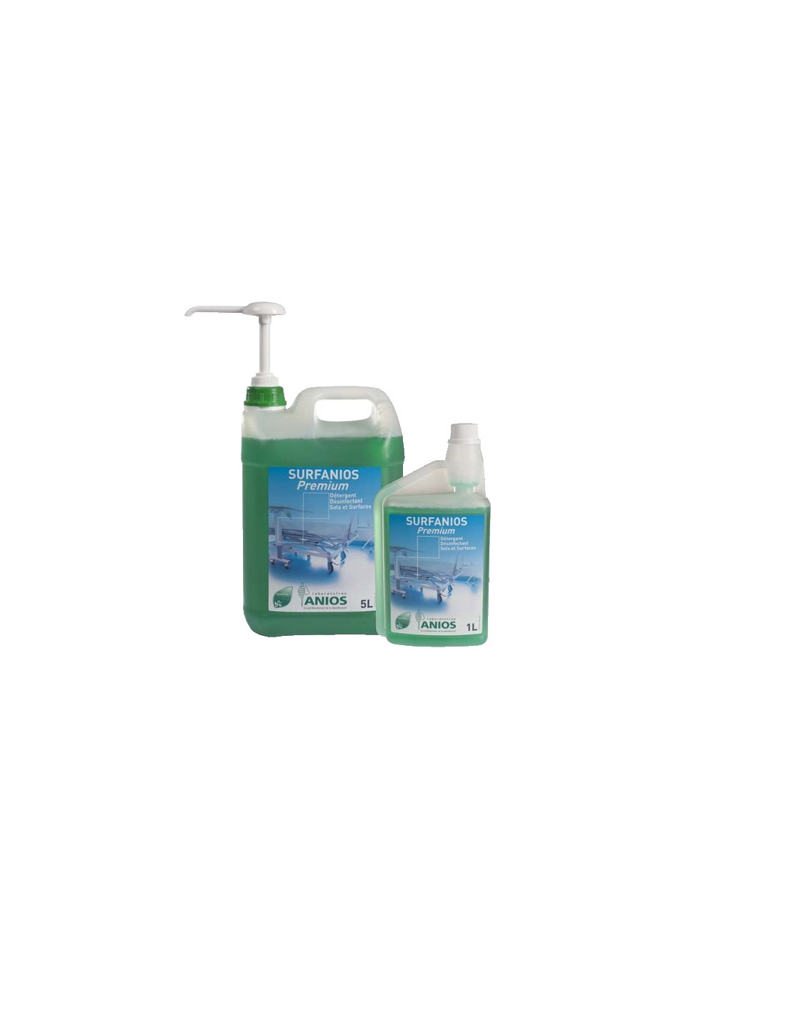 Surfanios Premium is a high-performance disinfectant detergent designed for the simultaneous cleaning and disinfection of floors, surfaces, and non-invasive medical devices.